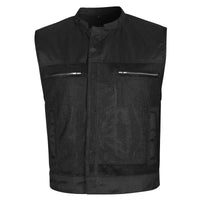 Designed for riders who operate in the heat and move with intent, the Strike-point Mesh Club Vest combines ultra-lightweight mesh construction with mission-grade Cordura reinforcements to deliver unmatched airflow and tactical readiness. With a cropped zipper and snap front closure for wind and rain protection, this club-style vest doesn’t just ride — it performs under pressure. Dual concealed carry pockets (including one external quick-access pocket) are reinforced by double-stitched shoulders, allowing for secure, confident carry on every ride. Functional storage is locked in with two zippered chest pockets and two snap-closure hand pockets. Finished with a breathable mesh liner, 1-inch collar, and tactical clean lines, the Strike-point is engineered for riders who move fast, ride hard, and stay mission-ready — even in the heat of the day.